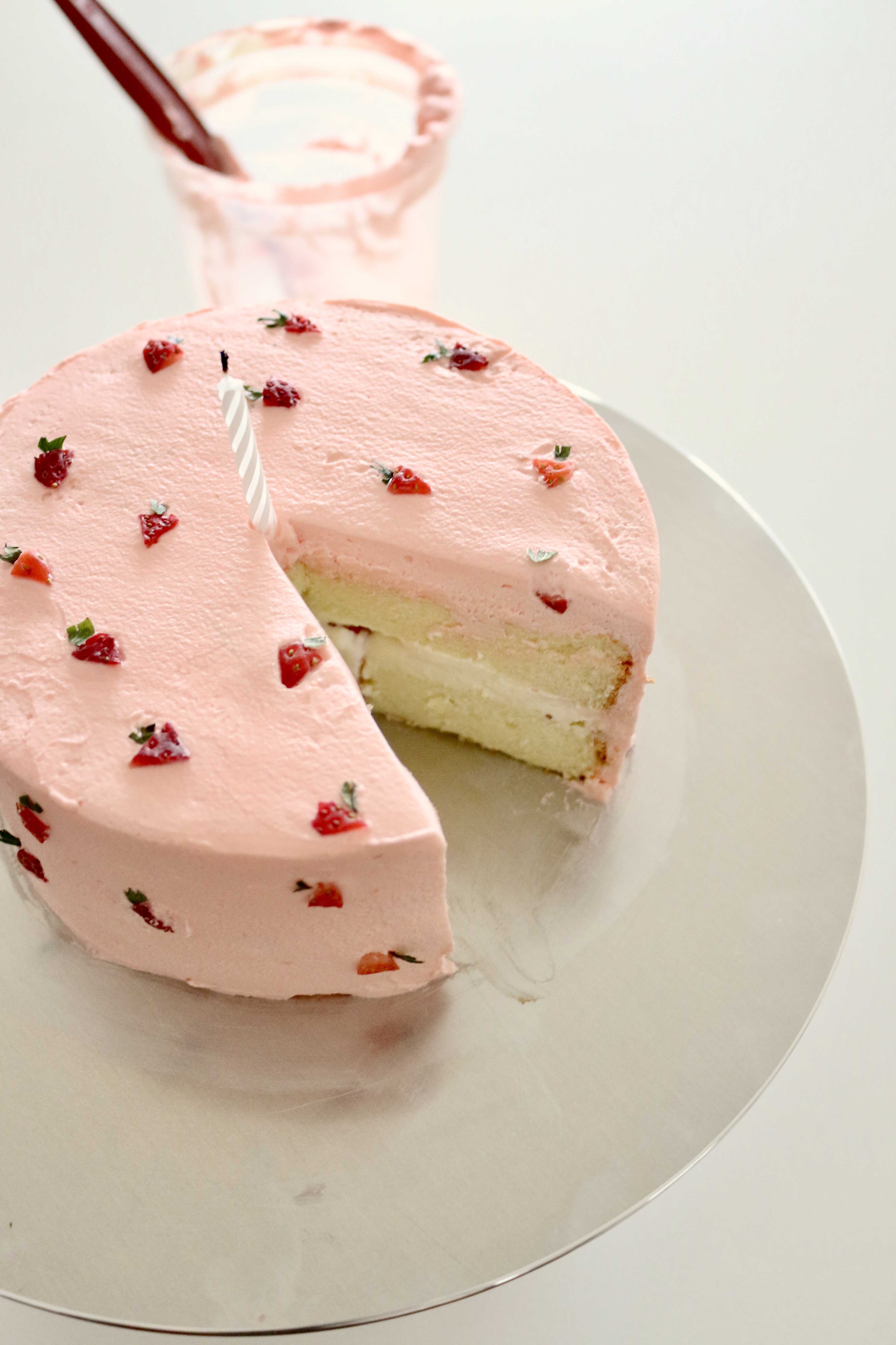 - I usually pair this cake with my stabilized whipped cream recipe to make a strawberry shortcake, but it can easily be paired with any other frosting